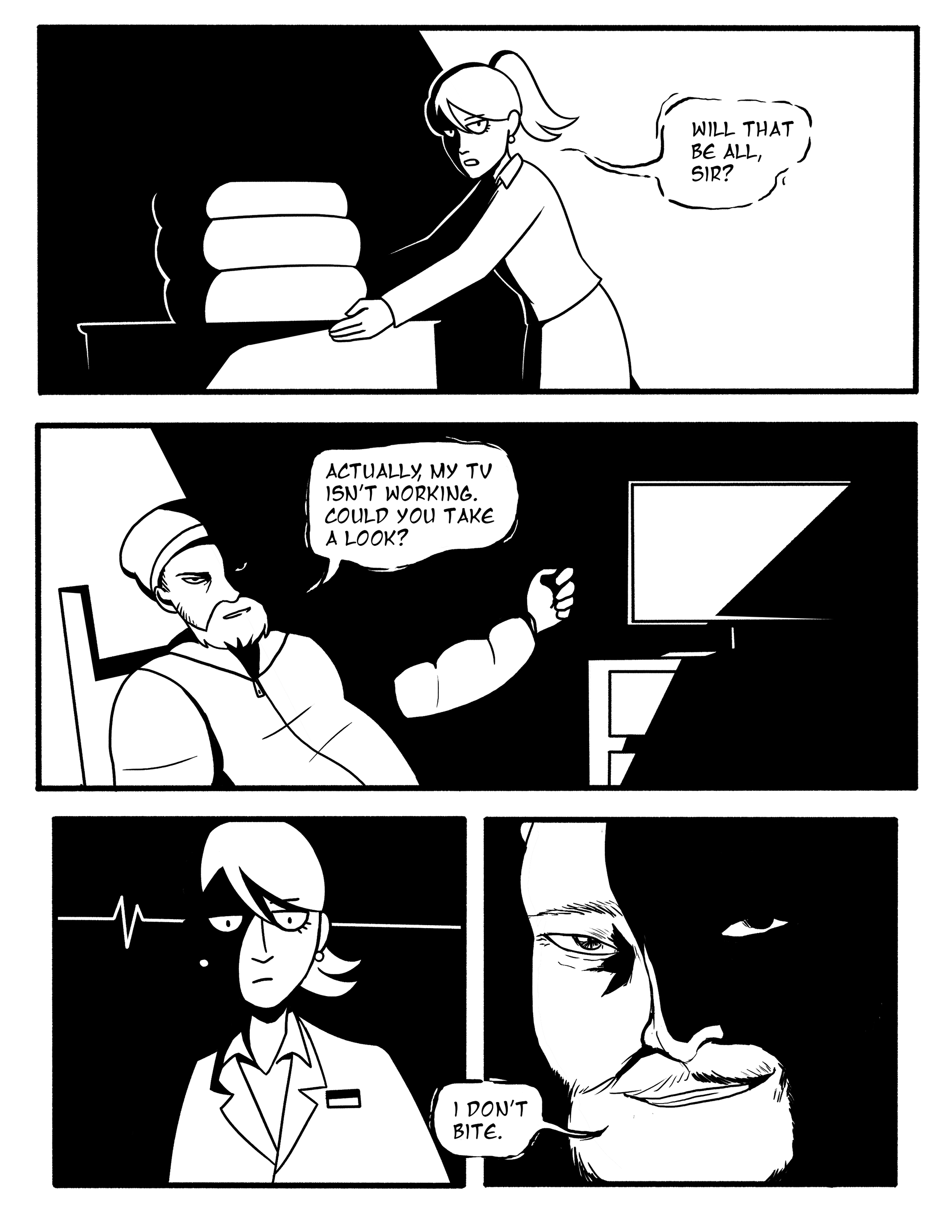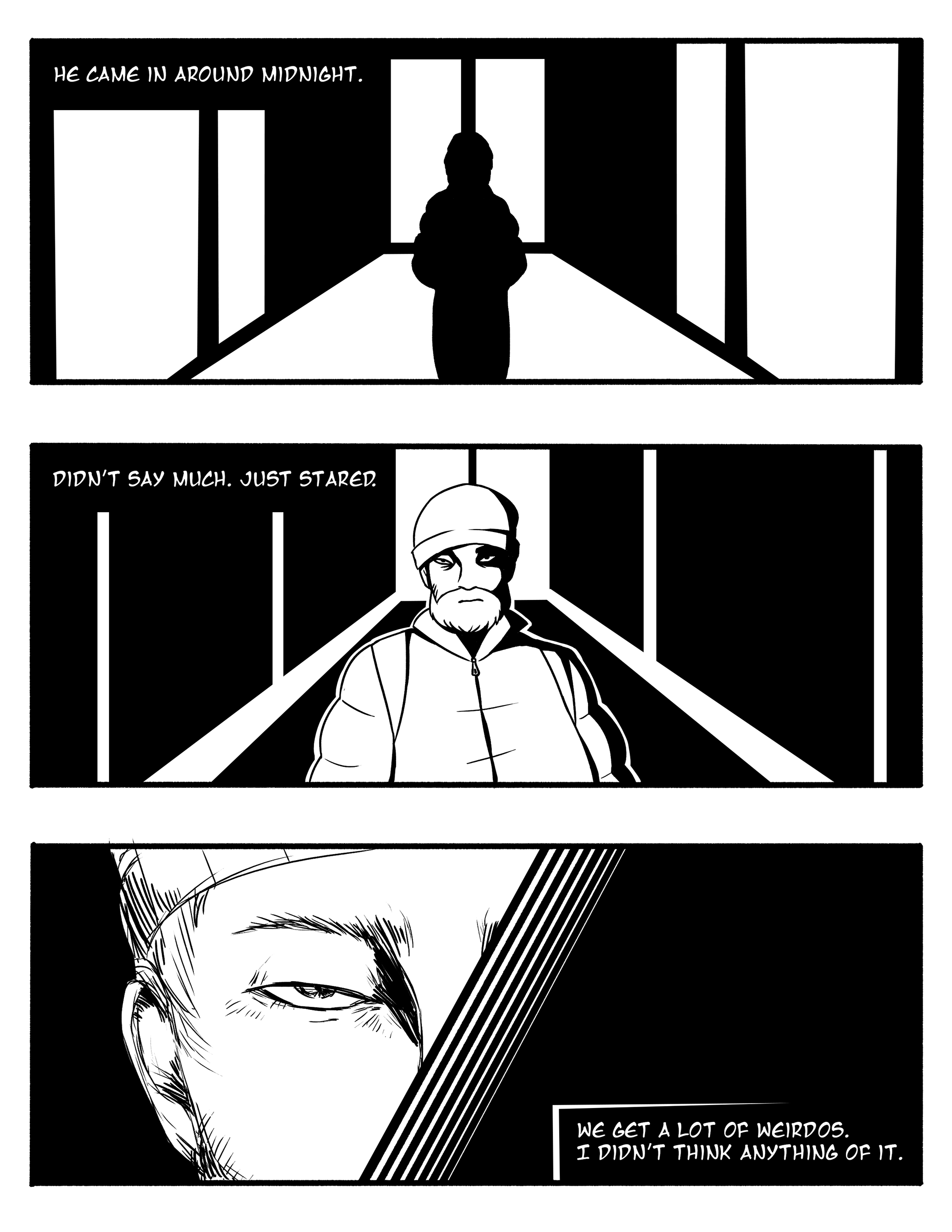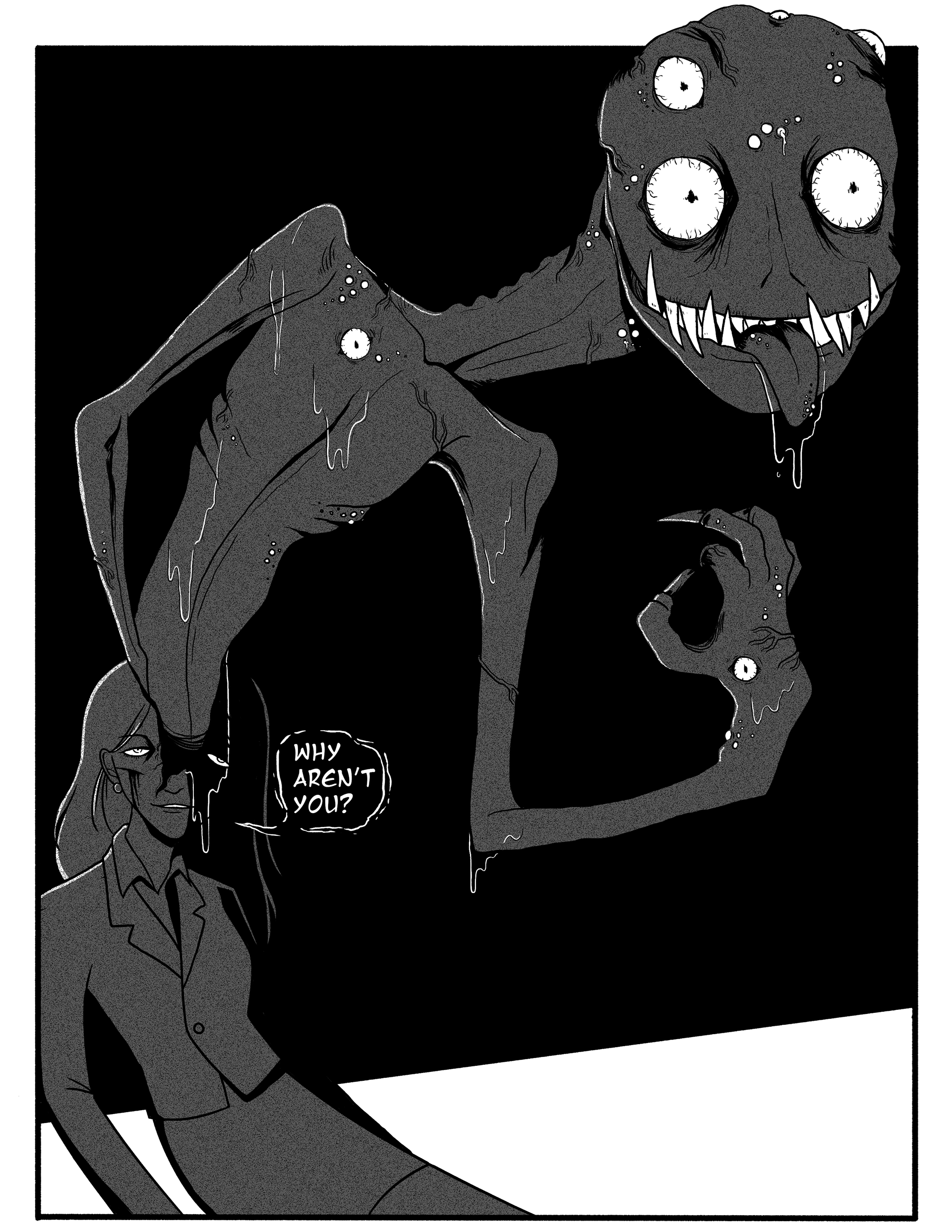 Short horror comic inspired by the works of iconic horror manga artists. Created in Adobe Photoshop.